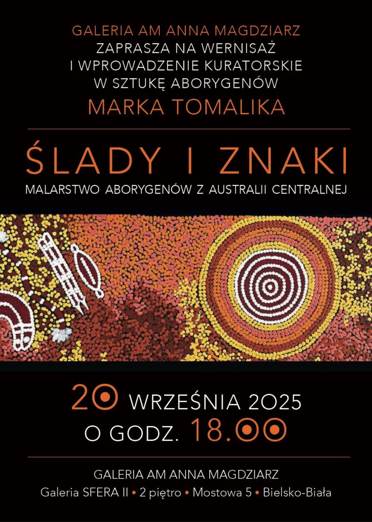 20.09 – 30.10.2025 Galeria Malarstwa i Rysunku Anny Magdziarz, Bielsko-Biała – Wystawa Ślady i Znaki – malarstwo Aborygenów Australii Centralnej